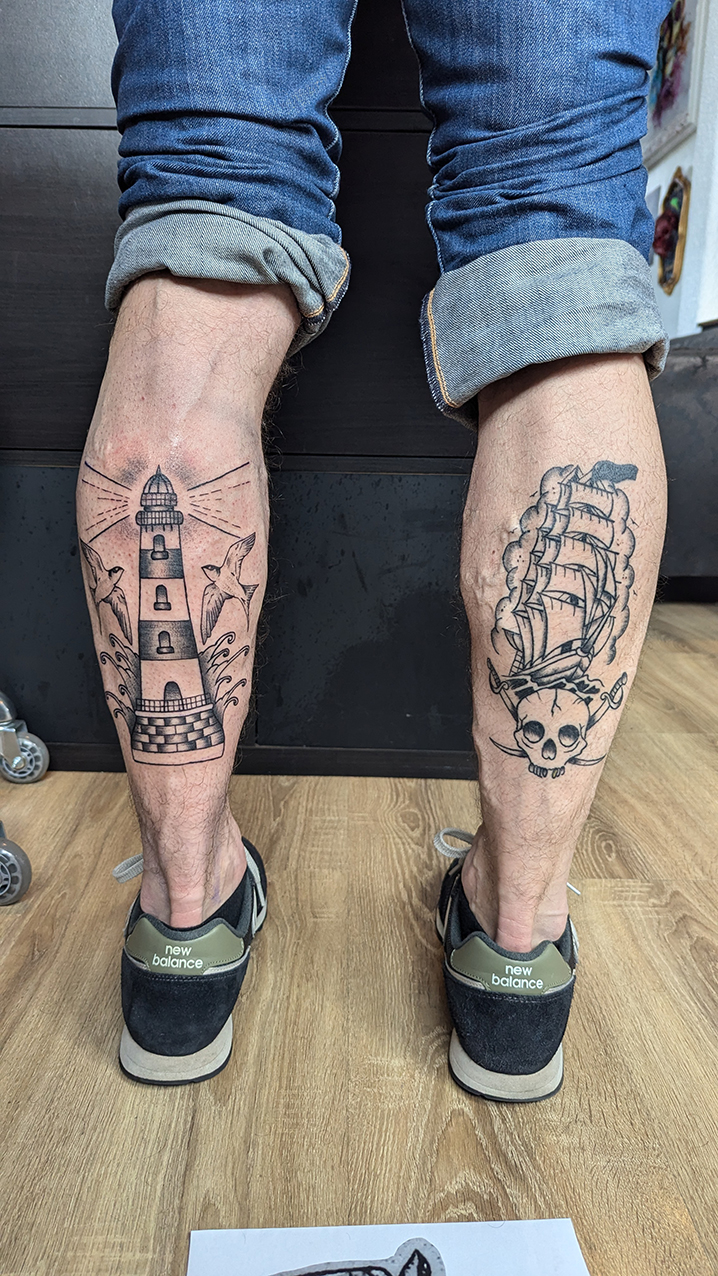 Réaliser un tatouage traditionnel américain demande une grande rigueur : équilibre des formes, précision du trait, respect des codes historiques tout en l’adaptant à la personnalité du porteur.